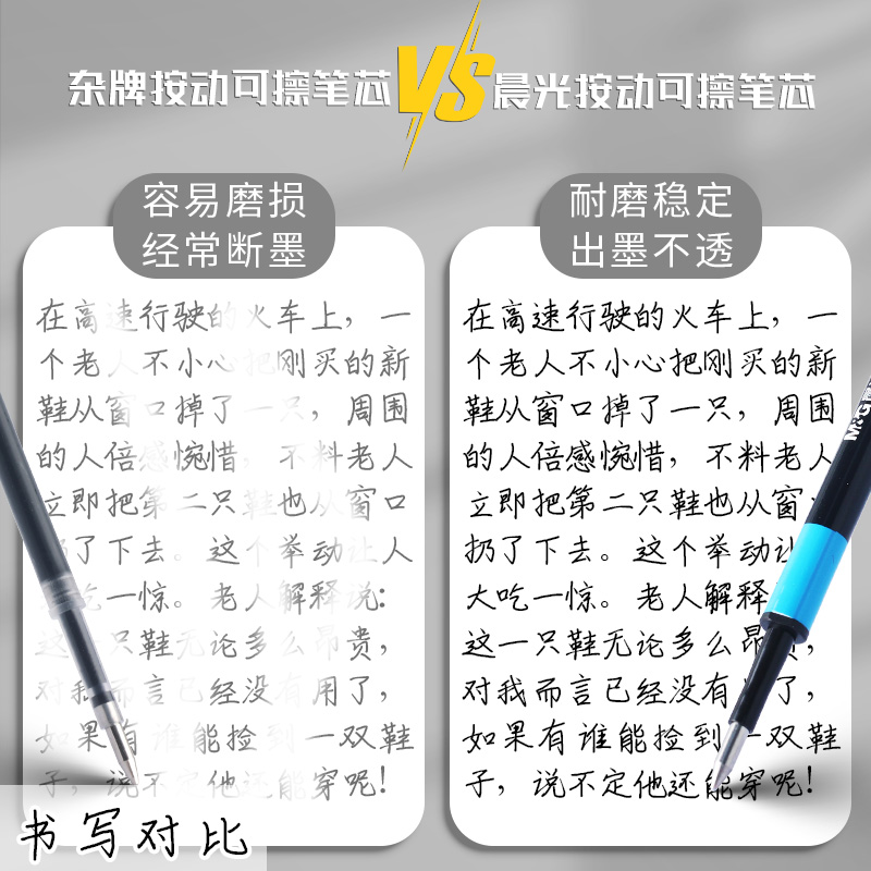 晨光按动可擦笔笔芯热可擦中性笔替换芯小学生专用子弹头黑色晶蓝色0.5mm热敏魔力摩擦按动式的磨易可擦芯