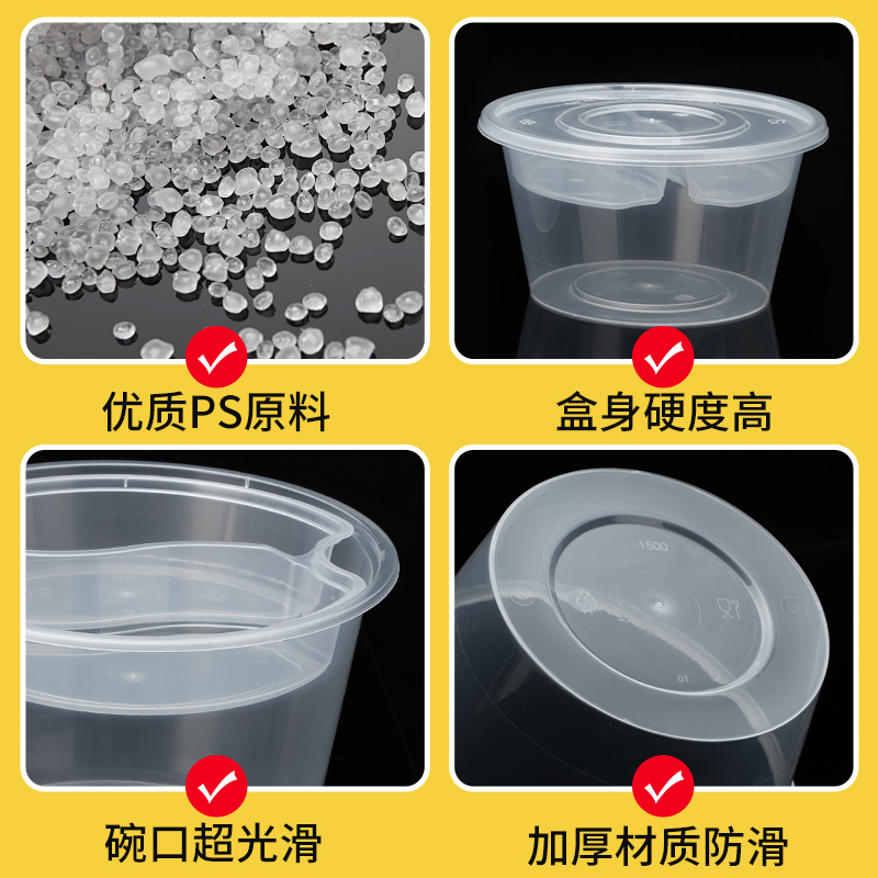 一次性碗塑料家用小碗套装圆形带盖饭盒打包餐盒餐具冰粉商用碗筷