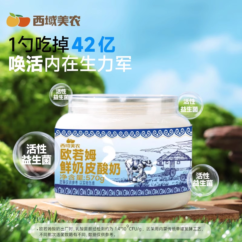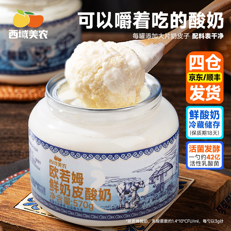 西域美农欧若姆鲜奶皮子酸奶1kg*2瓶无蔗糖内蒙古特产非干噎冷萃