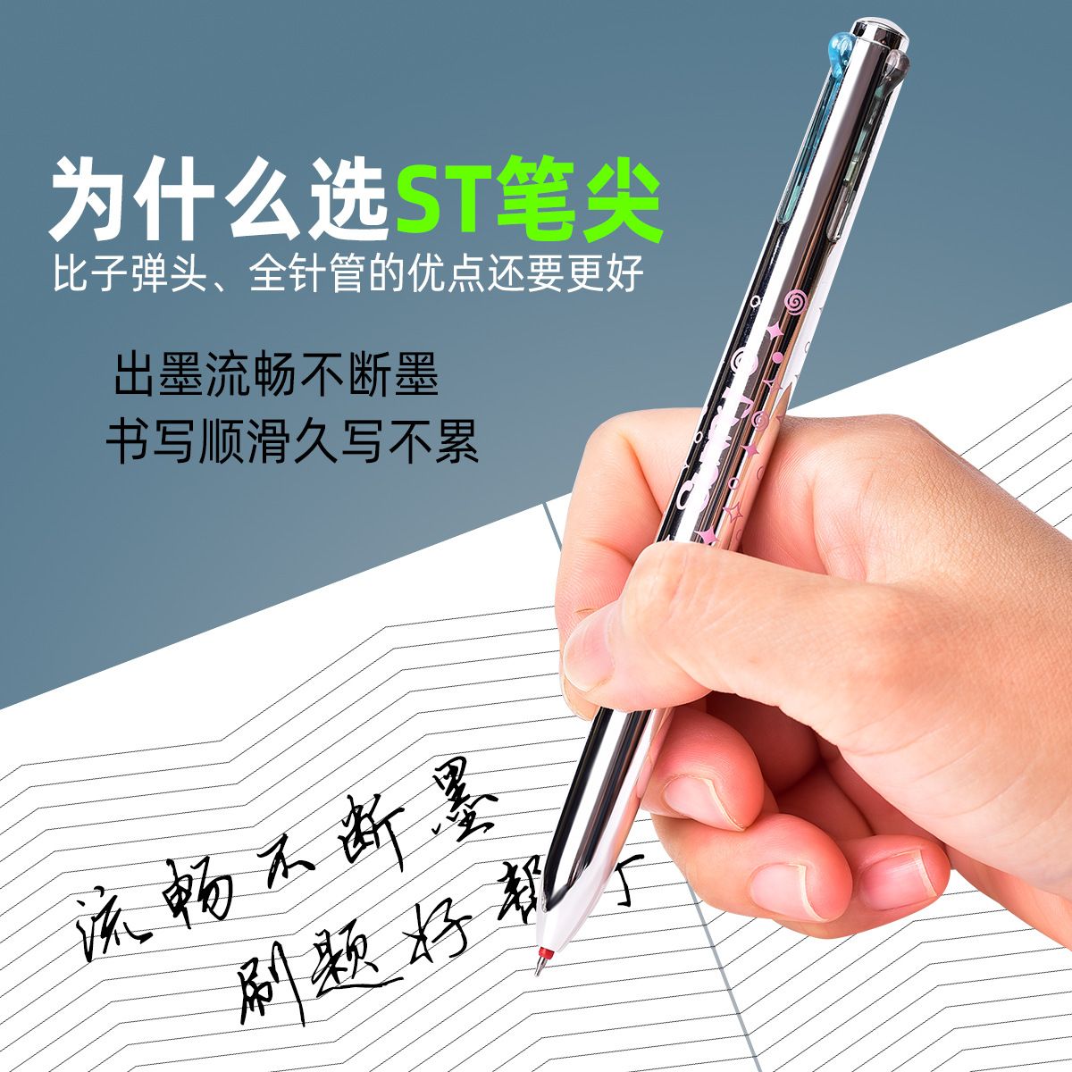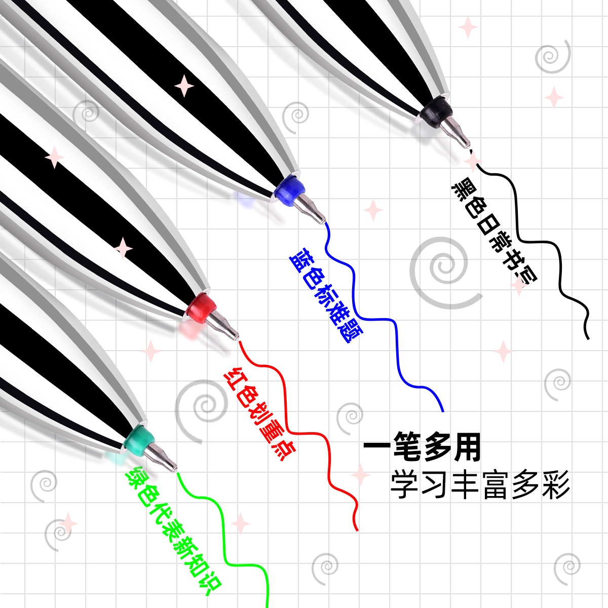 四色中性笔金属色水笔学生用多色模块笔耐用ST笔头刷题笔按动笔
