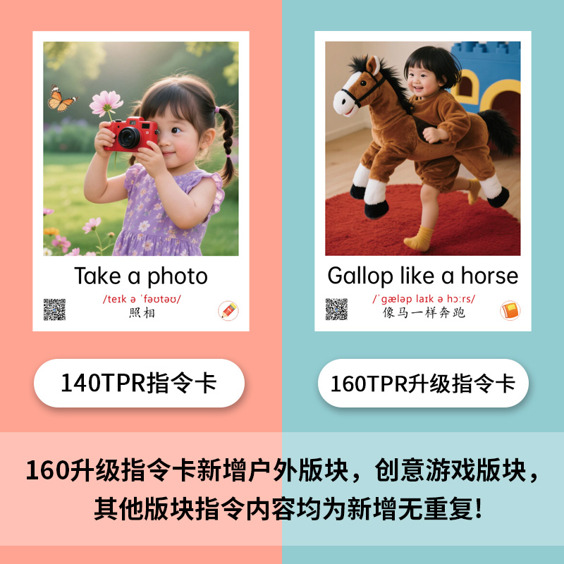 真人版亲子TPR卡动作指令闪卡英语启蒙早教幼儿互动训练卡点读版
