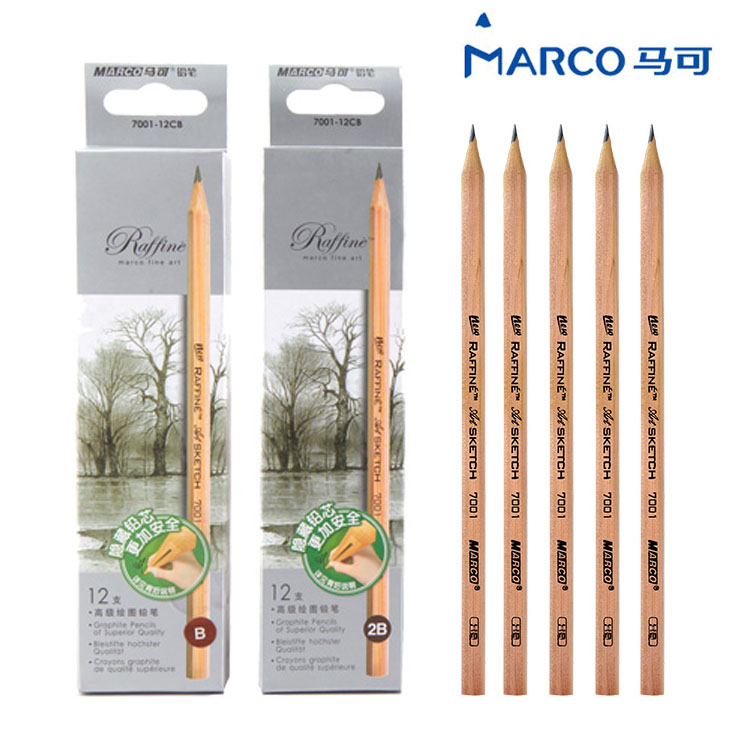 马可7001素描铅笔HB 2B 3B 4B 5B 6B 7B 8B 9B 儿童学生初学者2比素描笔套装美术绘图绘画工具原木铅笔
