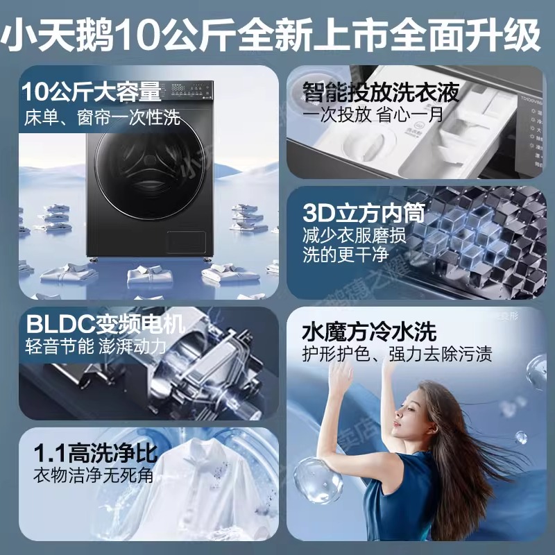 [国补20%水魔方]小天鹅滚筒家用全自动10KG洗脱烘洗衣机V868/618P
