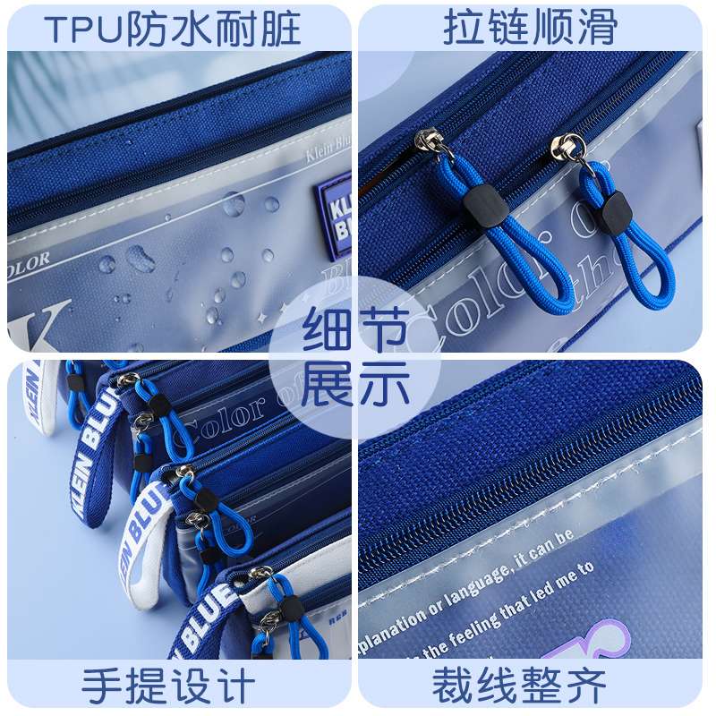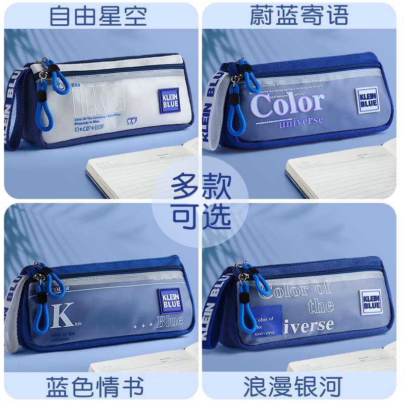 双层大容量笔袋男孩子帆布文具袋简约创意铅笔盒男孩款小学生透明