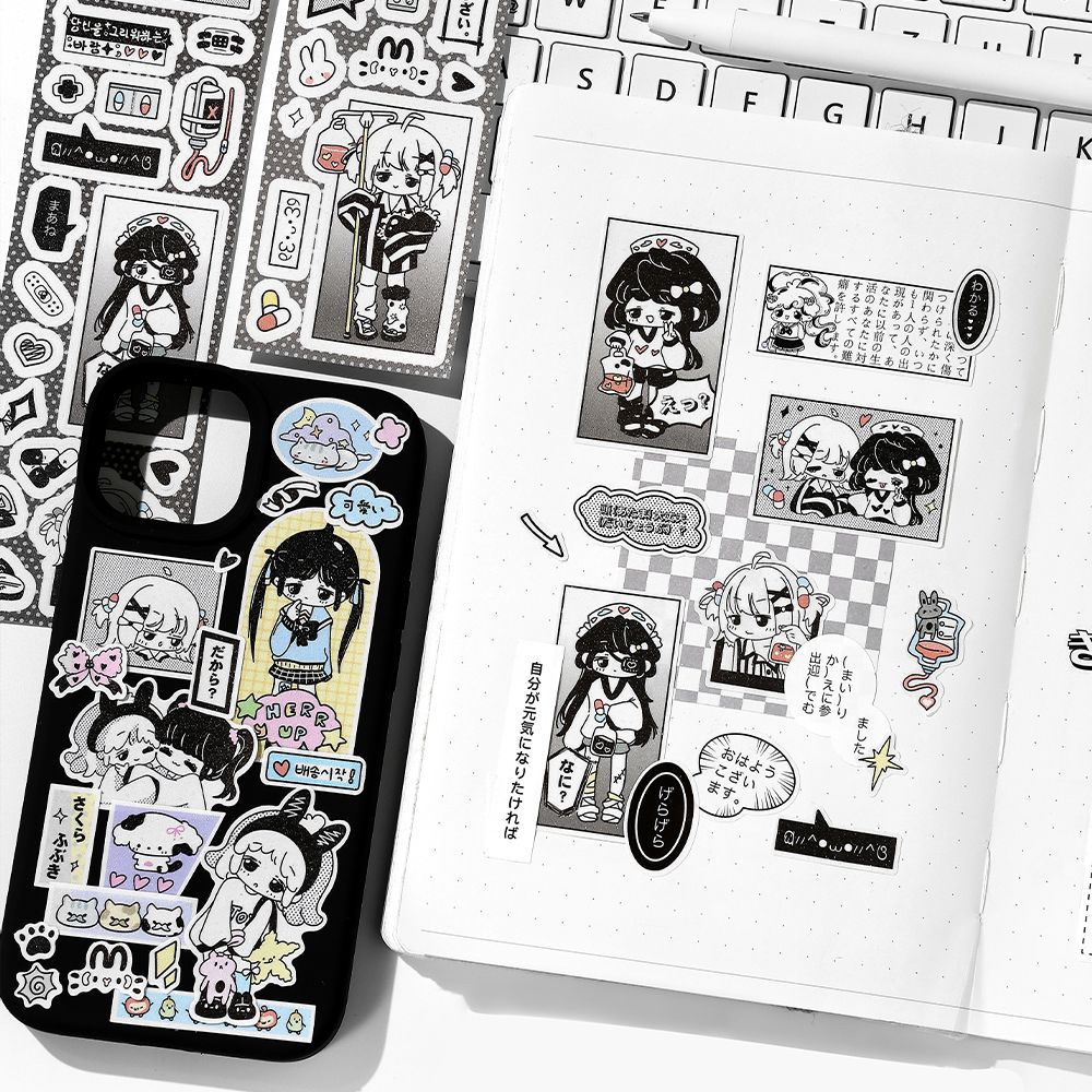Infeel.me日韩六段装长条胶带 古早次元系列 卡通人物贴纸手账贴