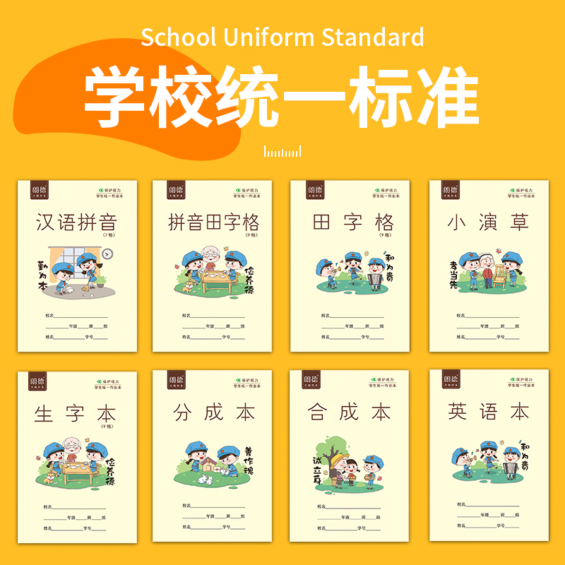32k生字本小学生专用拼音田字格本小演草二年级数学本英语本一年级拼音本子幼儿园练字本学生统一标准作业本