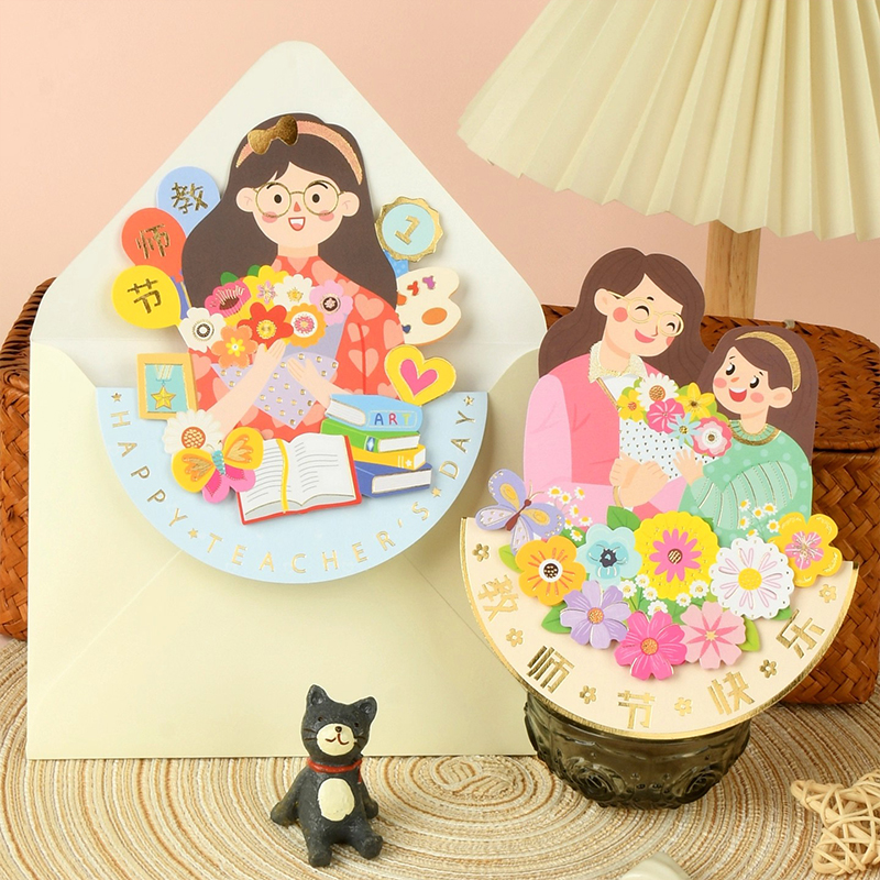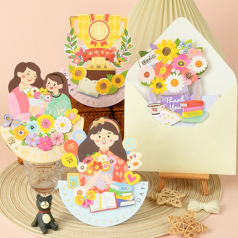2025新款教师节贺卡送老师手写谢师卡片折页感谢师恩明信片高级感节日礼物祝福鲜花束留言卡儿童幼儿园小学生