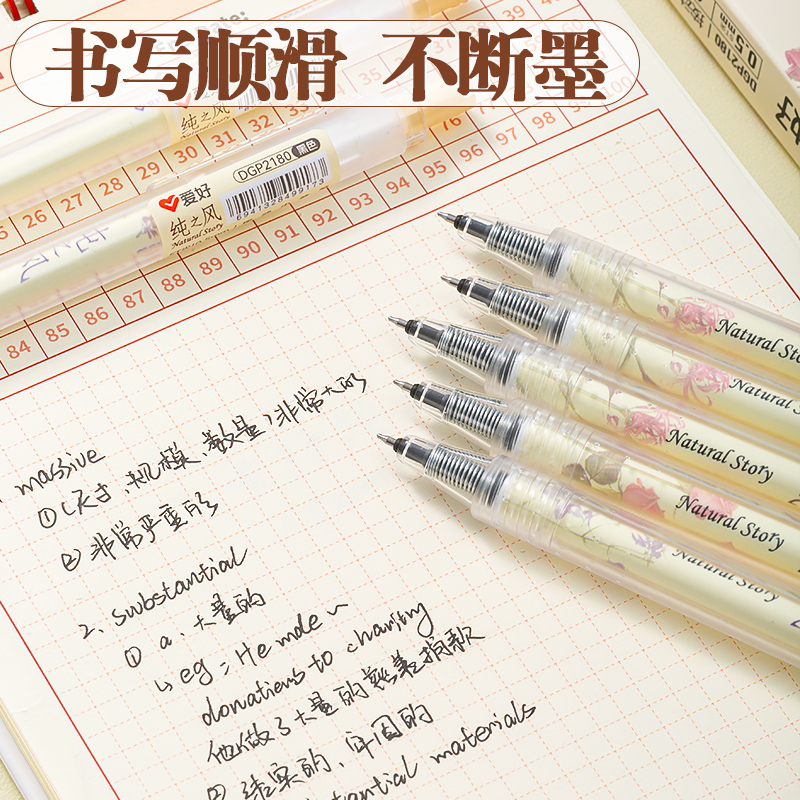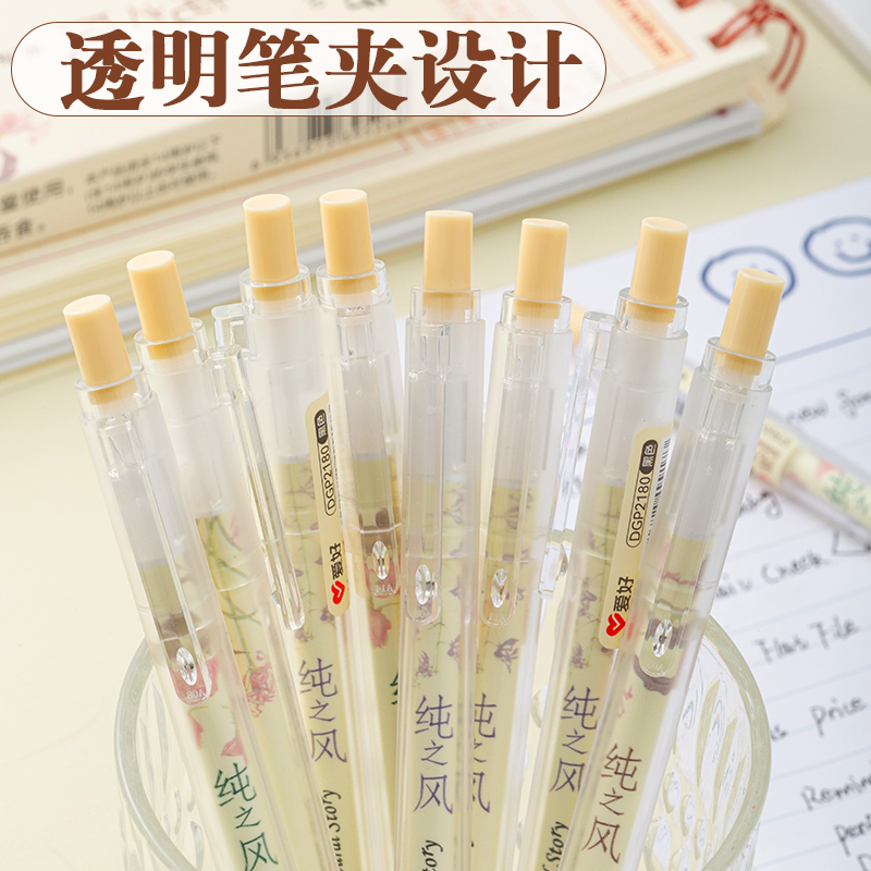 爱好纯之风按动中性笔ST头刷题笔速干顺滑透明考试笔学生专用备考水性笔0.5mm黑色透明考试笔小清新高颜值