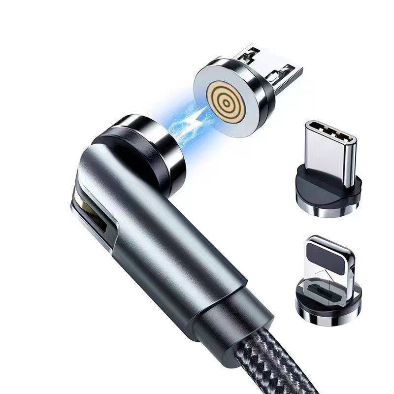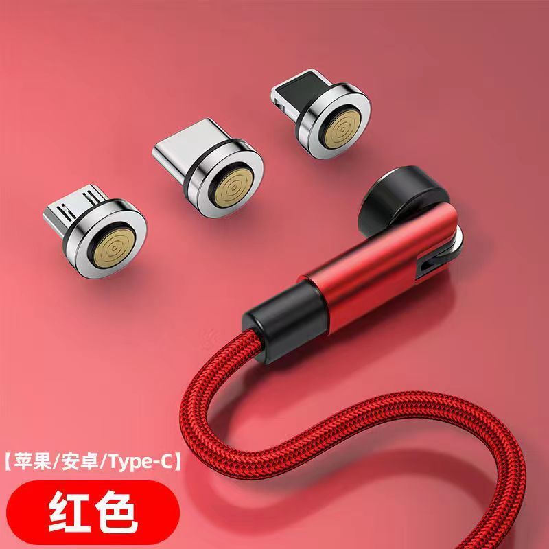 540度磁吸数据线120W超级快弯头充电线三合一66W闪充6A铁头typec安卓usb车载适用苹果ipad华为一拖三编织接口