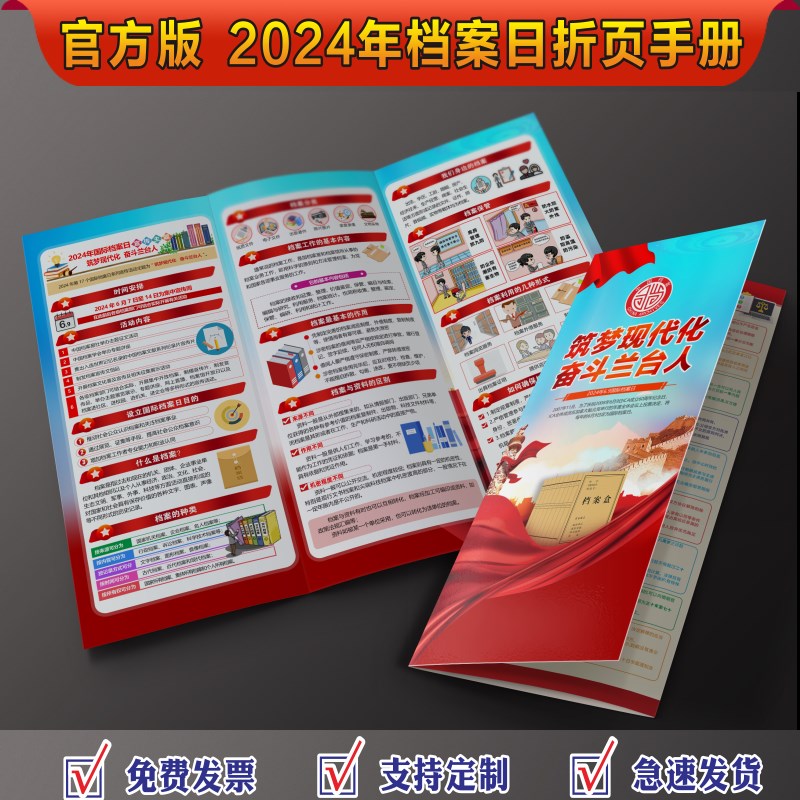 2024年国际档案日海报档案日宣传单档案日三折页档案实施条例折页