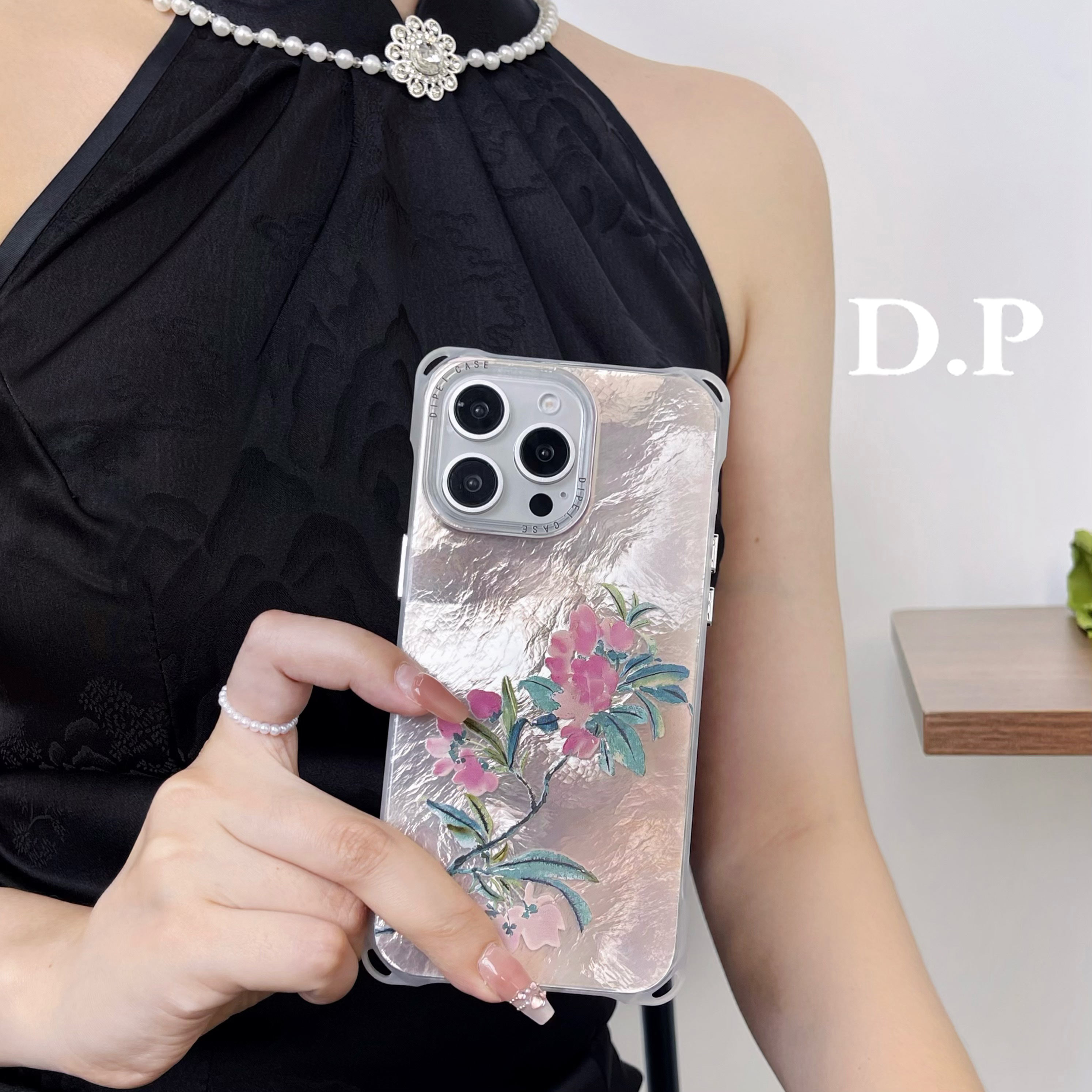 国风海棠花挂绳手机壳适用于苹果iPhone17promax荣耀oppo华为小米vivo斜挎侧背式手提链条复古新中式四角开孔