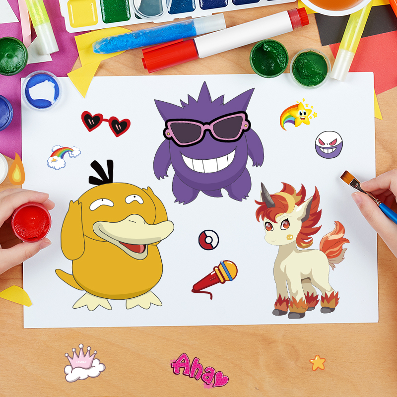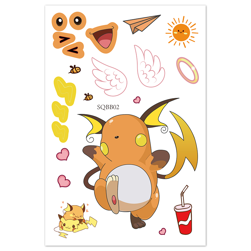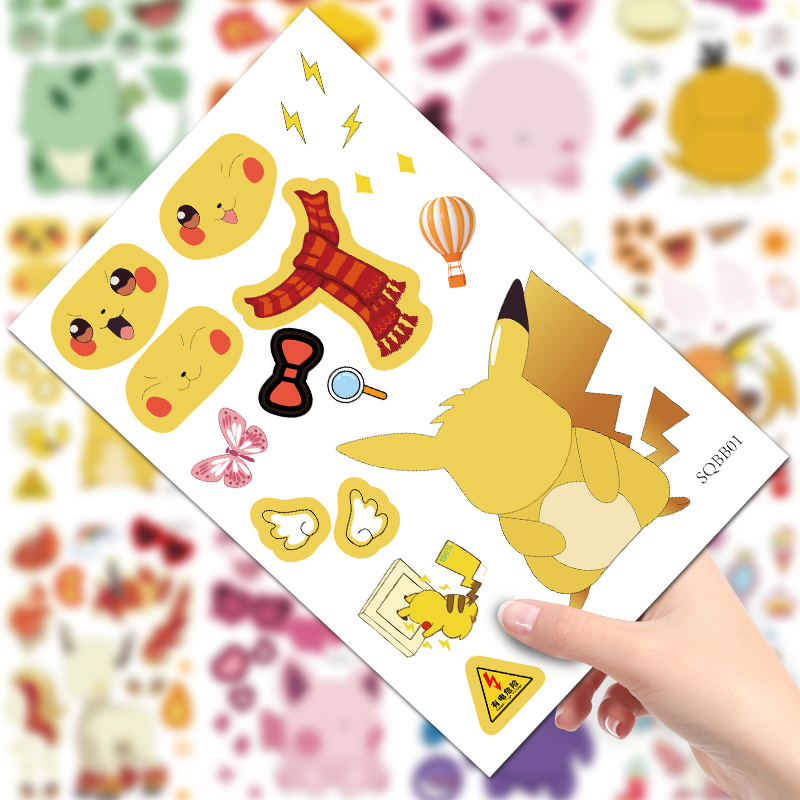 爆款卡通神奇宝贝可爱比卡丘贴纸儿童益智换脸贴画玩具贴画温馨治动物解压儿童益智玩具可达鸭妙蛙种子自粘贴