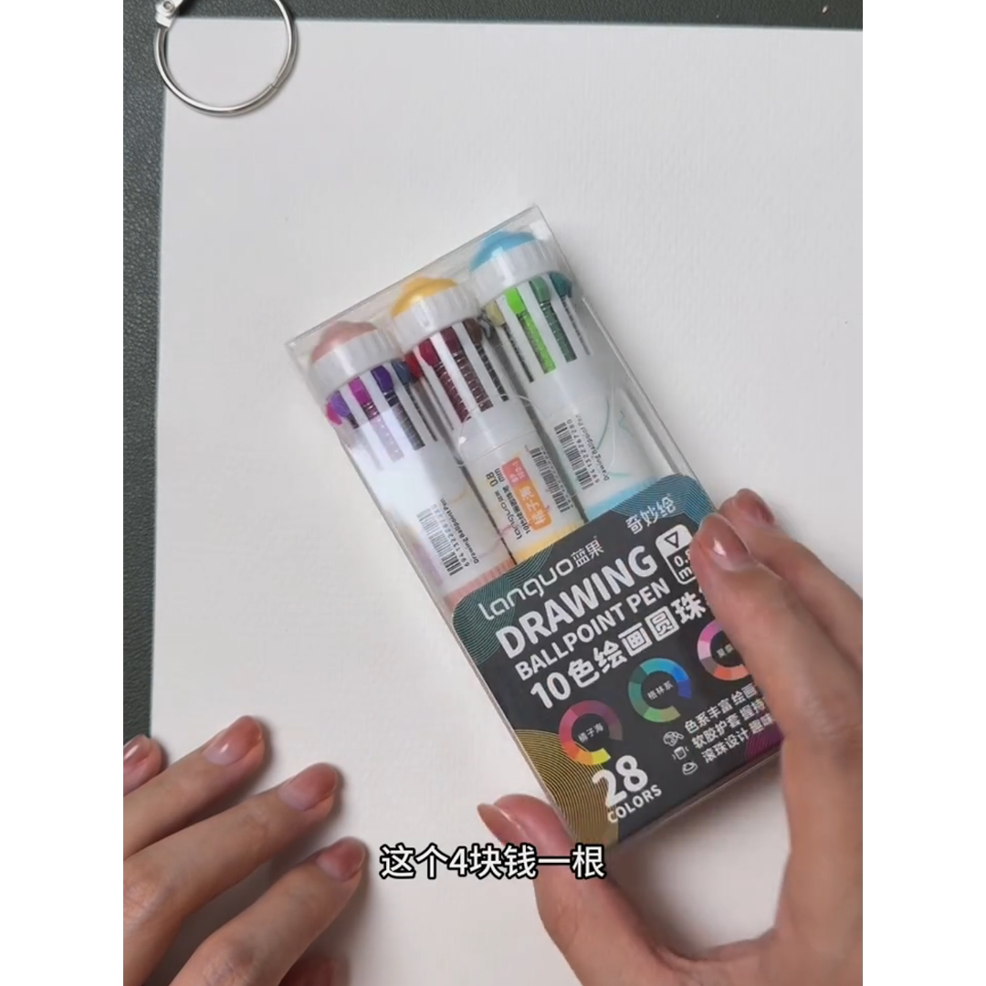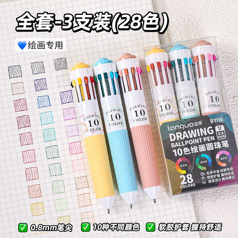 书同款蓝果绘画多色手账圆珠笔高颜值小众中性笔多色彩色按压式