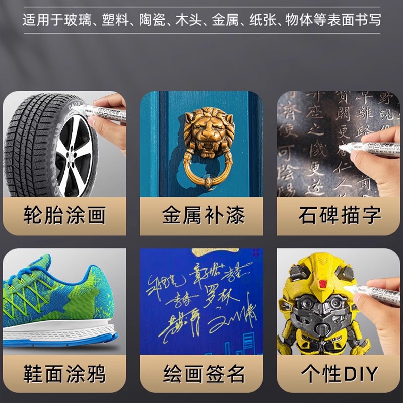 白色油漆笔防水防油不掉色记号笔白色补漆笔油性汽车描轮胎笔工地专用黑色工业速干白漆大头笔涂鸦描边标记笔