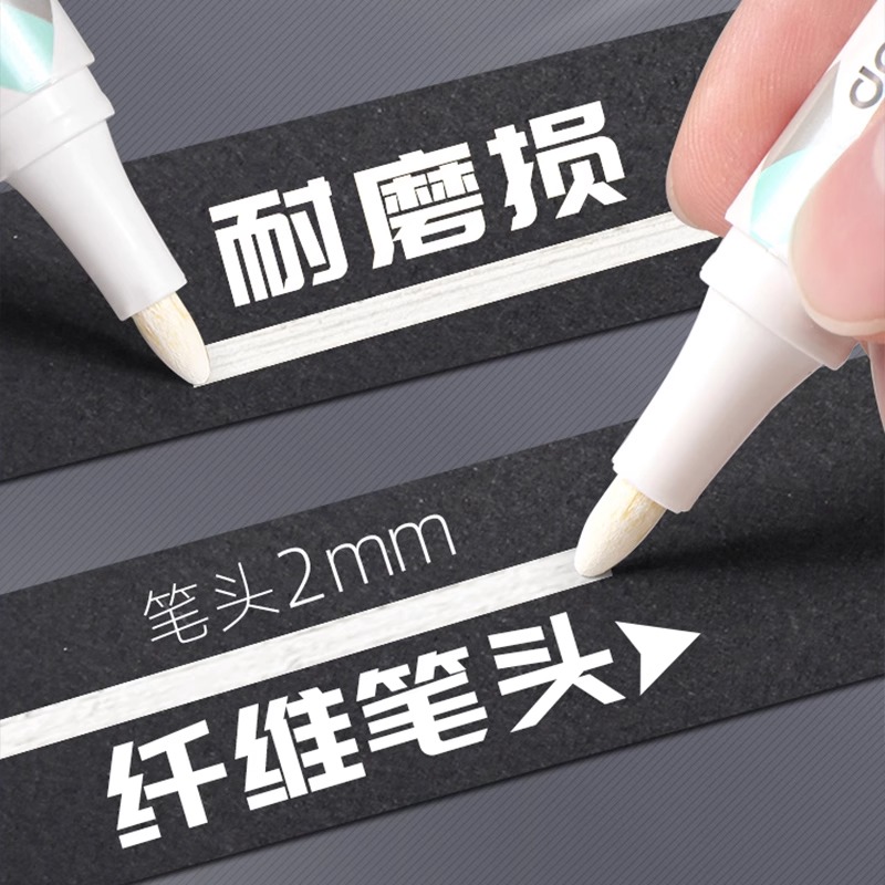 得力白色记号笔防水防油不掉色油性大头笔工地油漆笔木工标记笔白色勾线笔轮胎涂鸦笔粗笔签字笔不褪色S557