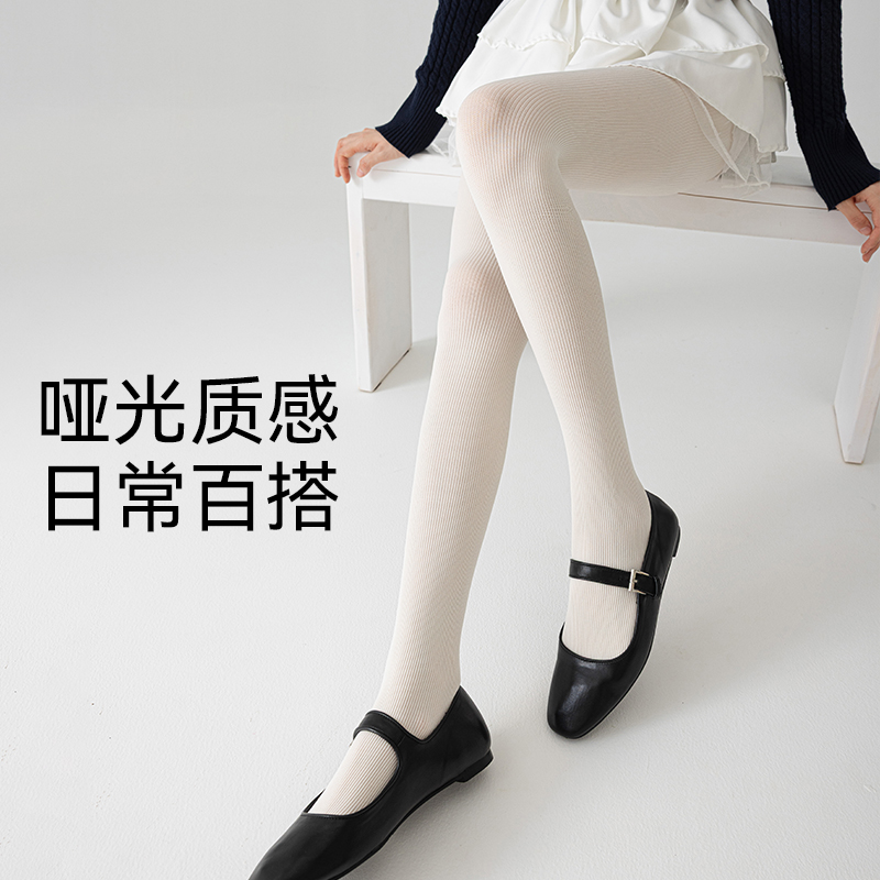 白丝竖条纹连裤袜女春秋薄款压力显瘦外穿打底裤洛丽塔奶白打底袜
