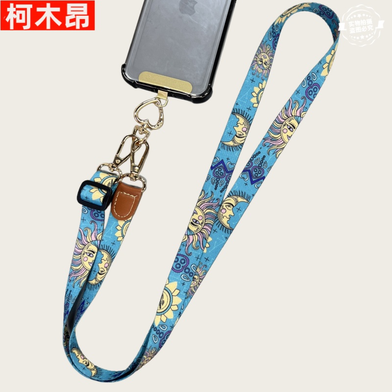 手机挂绳斜挎可调节长短皮质印花手机绳挂脖绳可斜跨吊绳相机通用