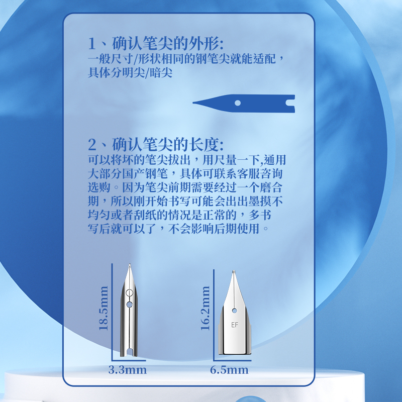 通用钢笔笔尖359明尖616暗尖原装007包头6006学生明尖可替换笔头EF0.38mm特细F0.5mm毕加索晨光英雄永生得力