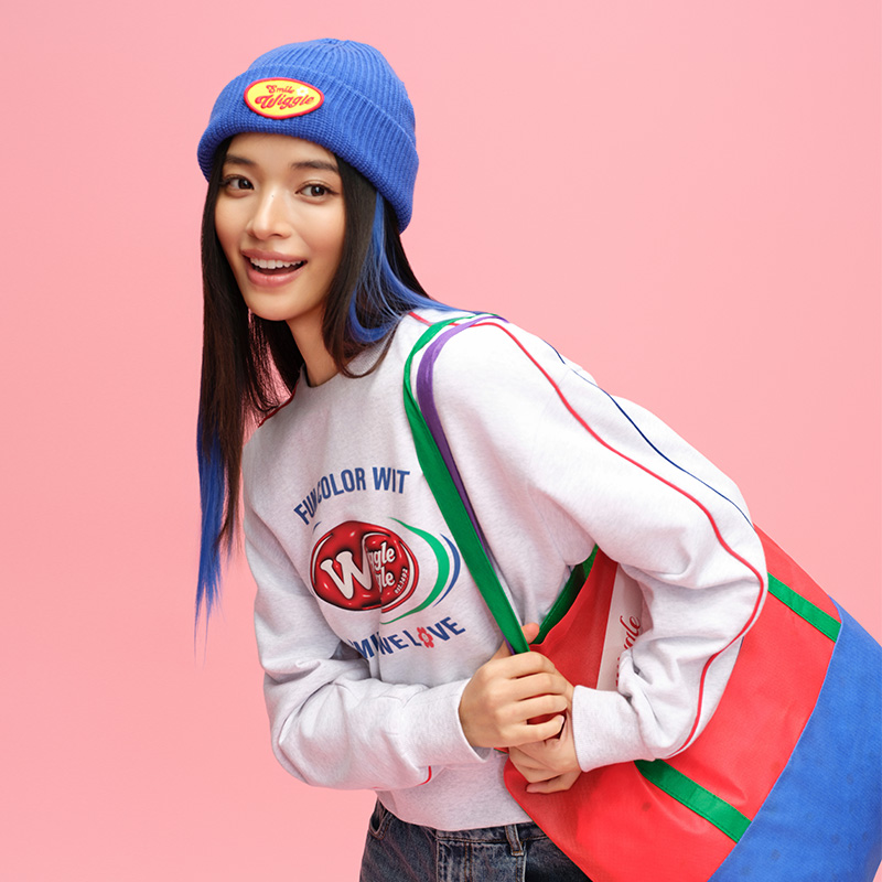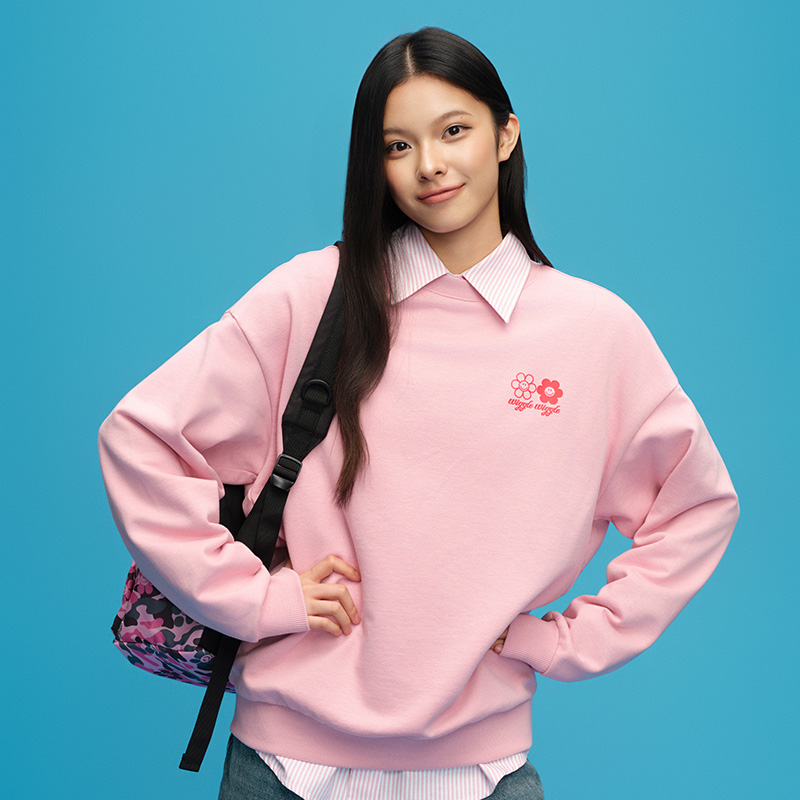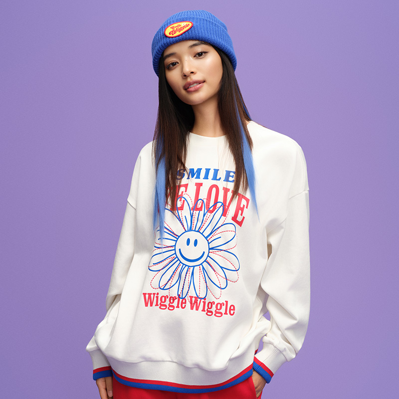 wigglewiggle25年秋季新款经典笑脸花时尚休闲圆领宽松卫衣男女款