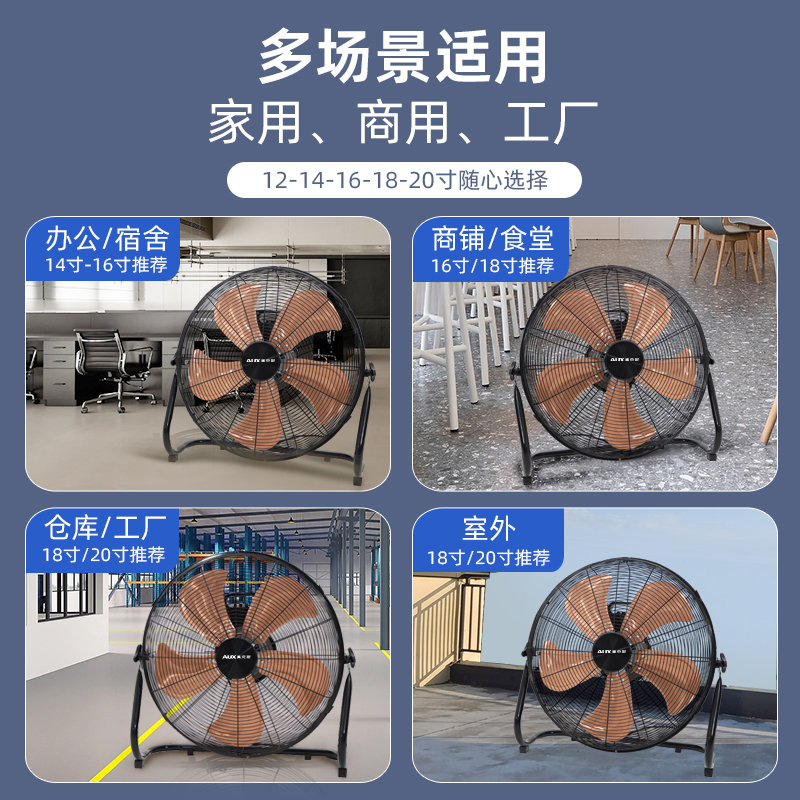 奥克斯工业电风扇强力大功率趴地扇工地专家用大风力爬地扇除甲醛