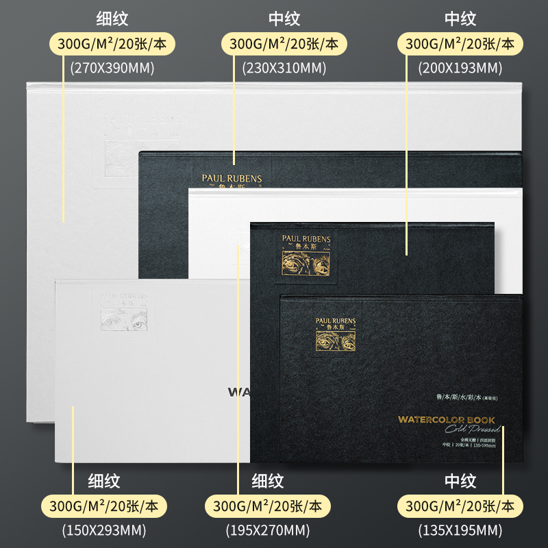 鲁本斯高吸收水彩本水彩纸棉浆300g加厚细纹4k8k32k16水彩本分装