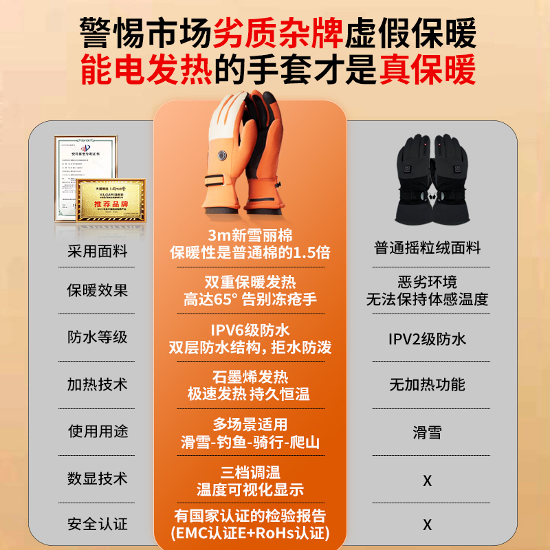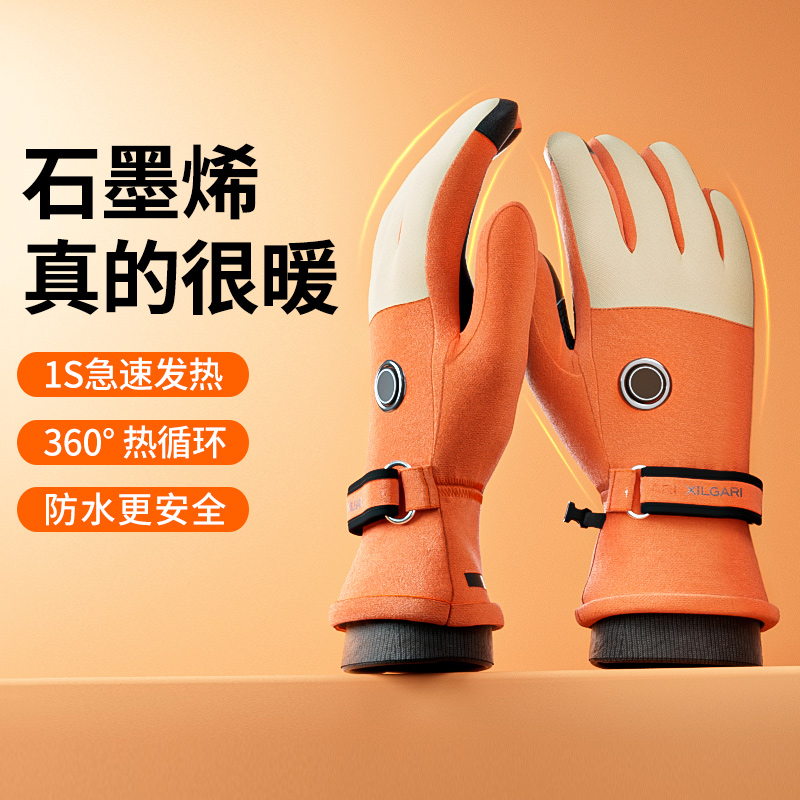 充电加热手套冬季骑车保暖神器电动车加热手套摩托车防风发热手套