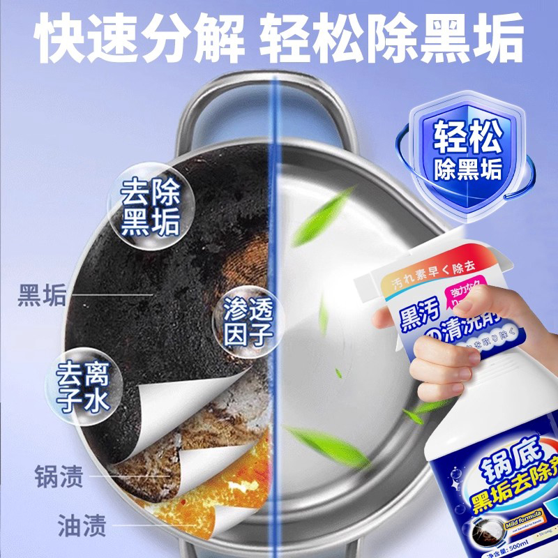 锅底黑垢清洁剂强力去污洗黑焦除黑剂去重油污神器刷洗不锈钢除锈