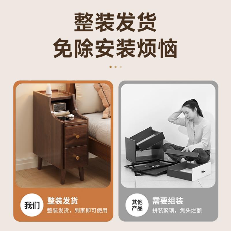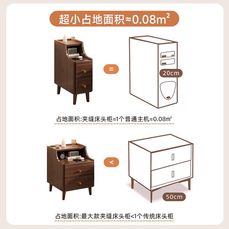 鹏音伴实木床头 柜 小型极窄床边 柜 超窄20公分30cm夹缝 柜 床头置物 架 窗头 柜摆件饰品