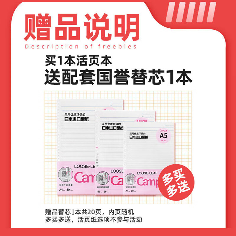 晨光活页本B5横线笔记本子A4方格网格记录本A5多规格可拆卸替芯软壳考研线圈错题本加厚纸张不咯手活页夹高中
