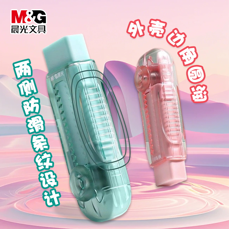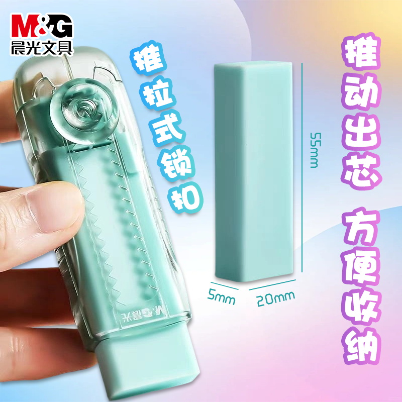 晨光可伸缩橡皮中小学生专用不留痕无碎屑无毒超净4b推拉透明橡皮擦高韧性不易断透明多色彩推动锁扣橡皮
