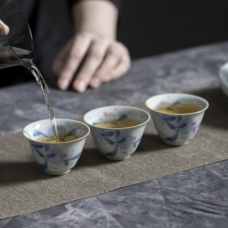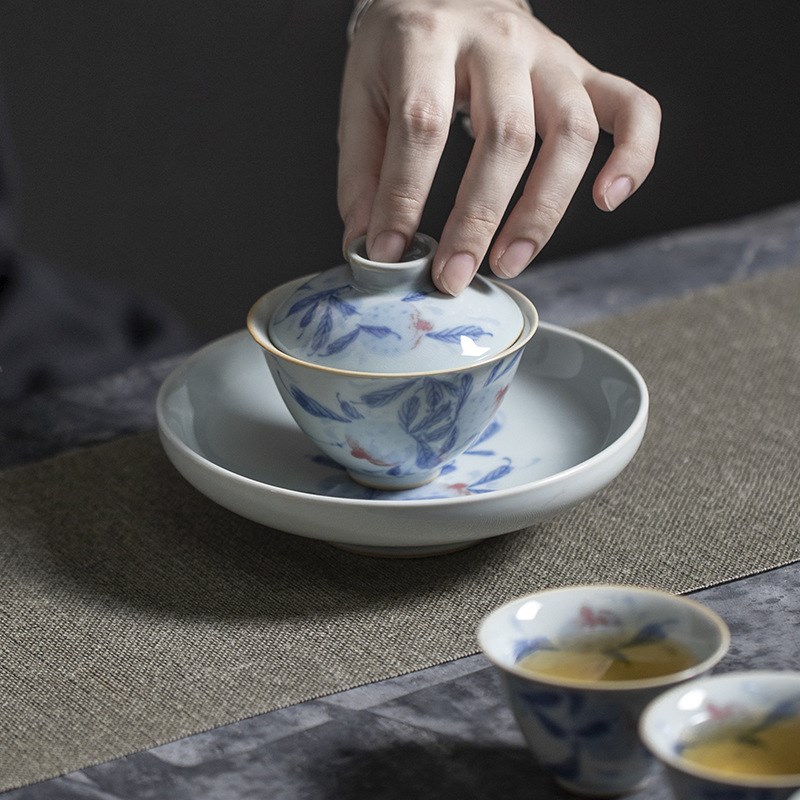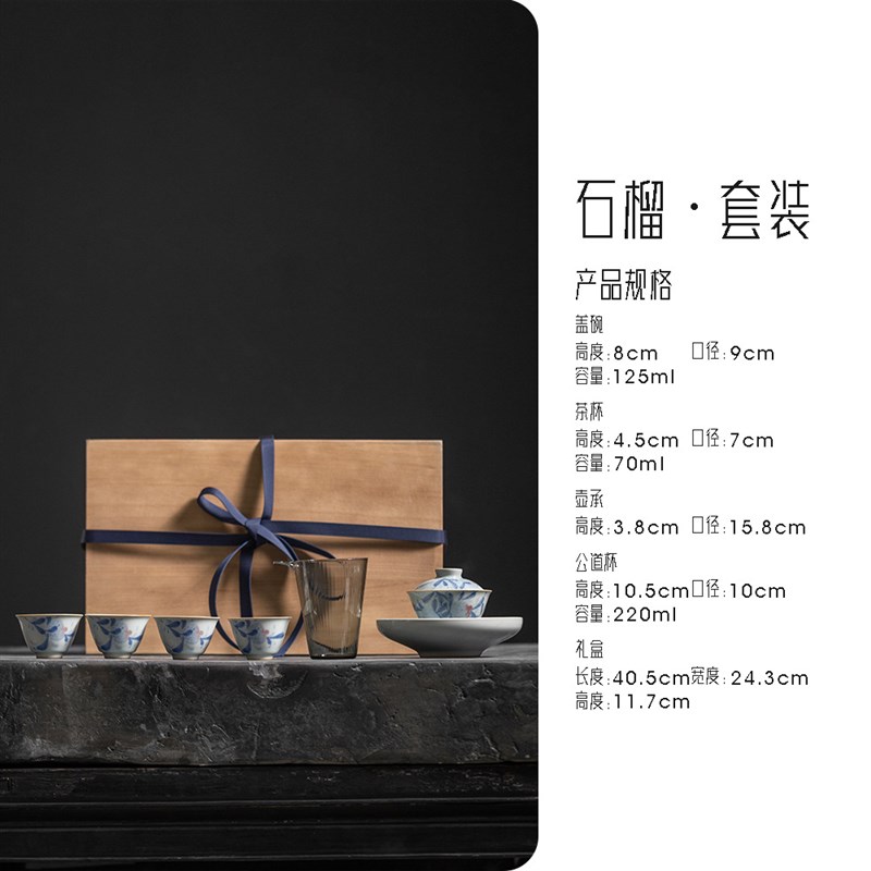 拟古青花幽梦石榴整套功夫茶具套装家用礼盒盖碗茶杯壶承套组