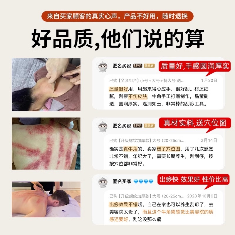天然牦牛角刮痧筒背部疏通按摩刮痧板面部脸部美容全身通用拨筋棒
