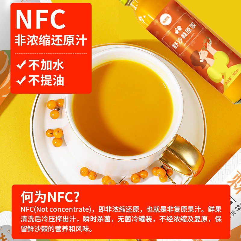 纯沙棘原浆液沙棘汁100%茶内蒙原汁浓缩果汁沙拉早餐膳食柠檬蓝莓