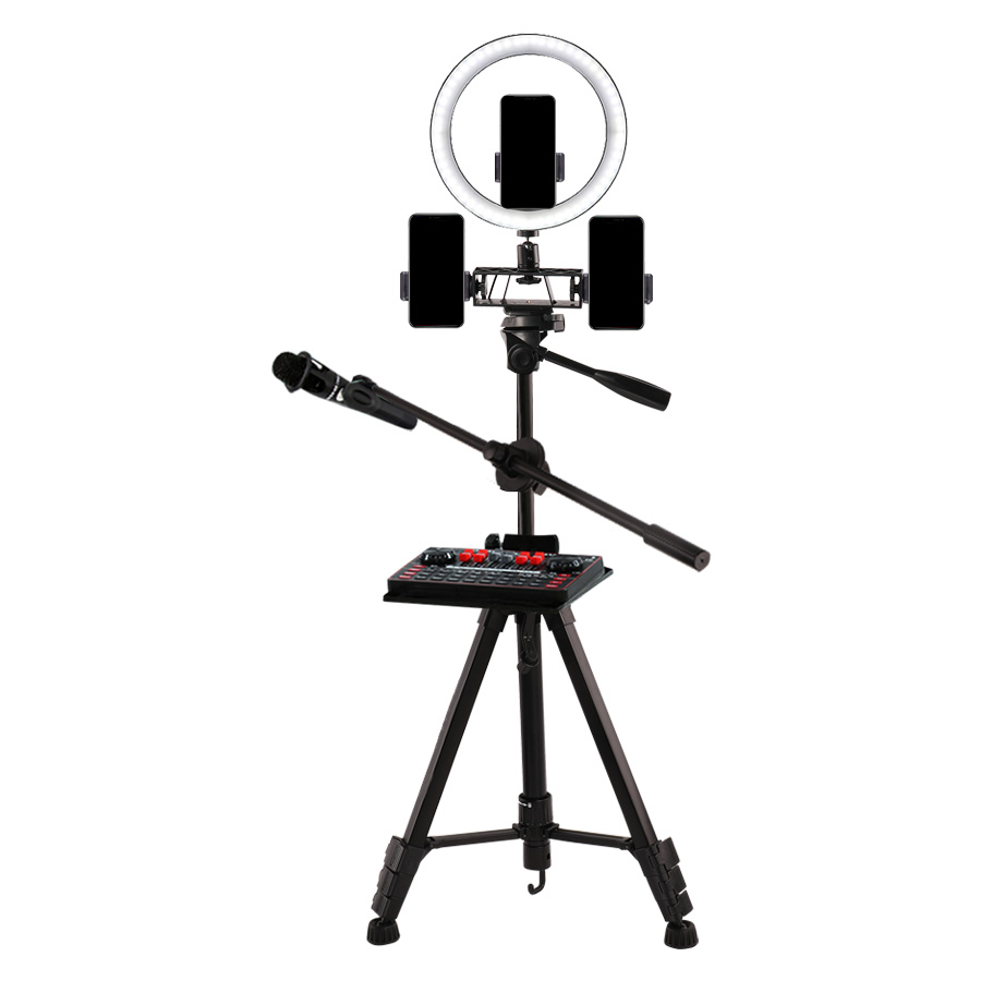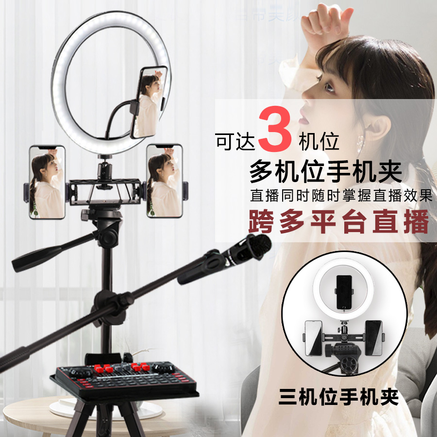 手机直播支架带补光灯三脚架多功能便携户外网红主播声卡话筒美颜快手抖音单反拍摄三角架落地式多机位全套