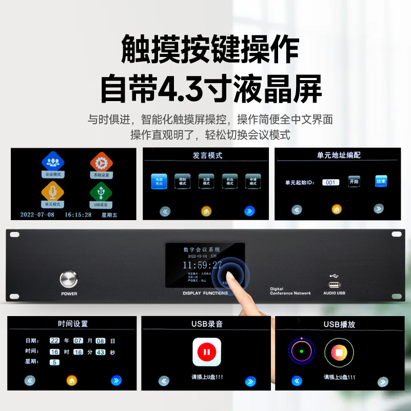 有线手拉手会议系统台式讨论型鹅颈话筒短杆方管主席代表麦克风