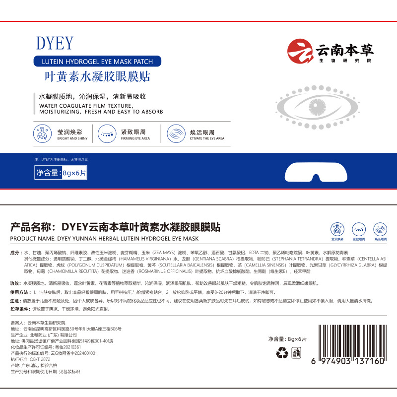 DYEY云南本草叶黄素水凝胶眼膜贴泌润保湿眼周冷敷改善干燥抗皱贴