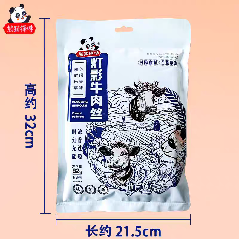 特产店同款熊猫风味四川特产麻辣五香味牛肉干办公室休闲充饥零食