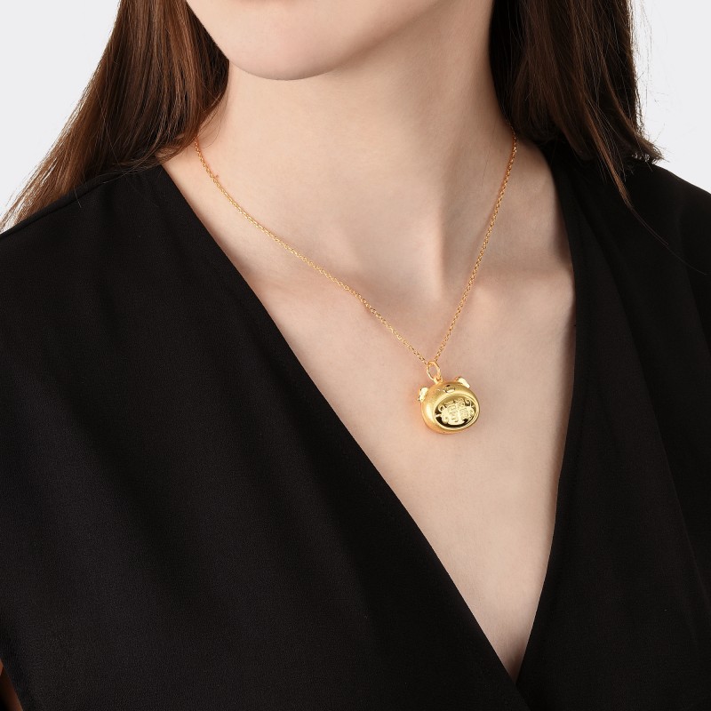 周生生黄金足金猪活泼可爱吊坠不含项链90999P计价