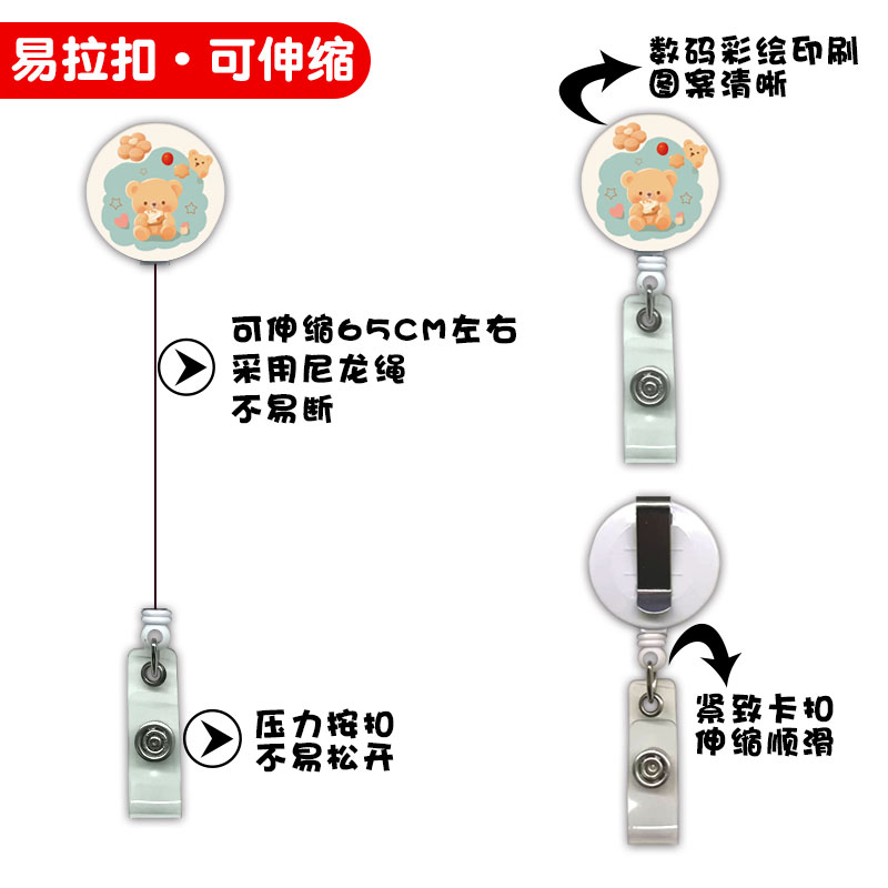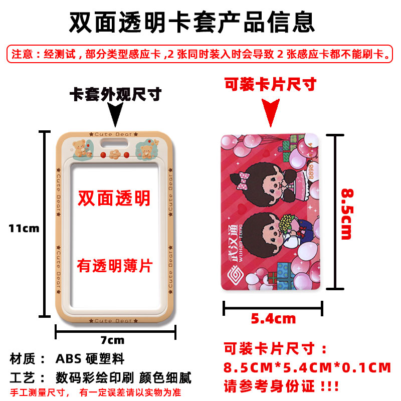原创奶油面包熊双面透明卡套饭卡门禁卡公交地铁卡保护套横版身份证件胸牌护士胸卡医护工作证易拉扣伸缩校园