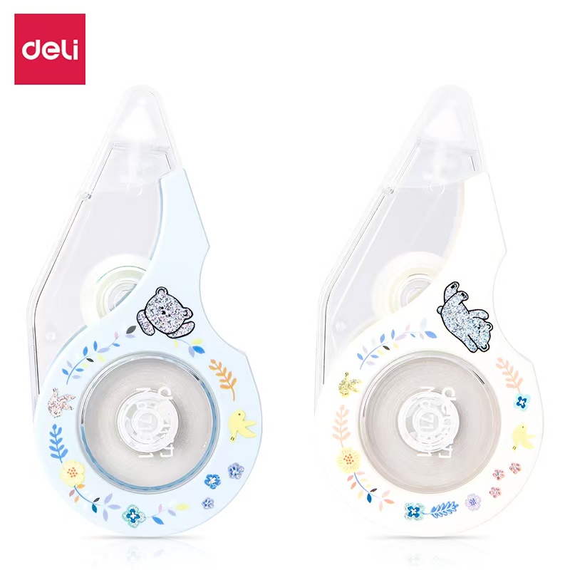 得力71531少女修正透明膜带大容量学生涂改带5mm*12m改正带改错带