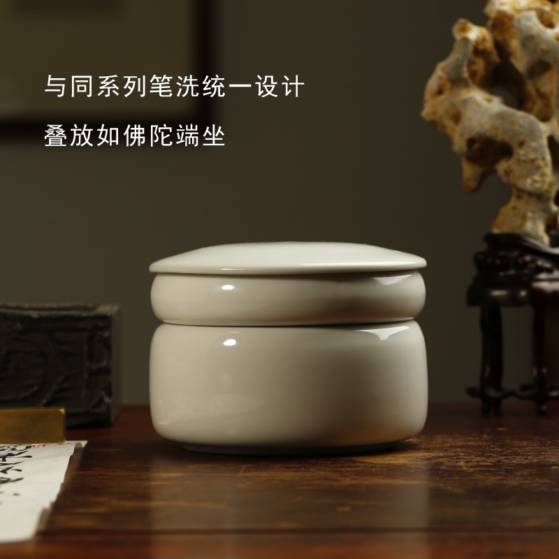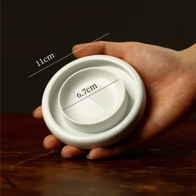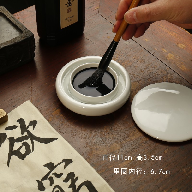 弘梅防干墨碟 仿古釉白瓷墨碟火锅砚 砚台简约方便防水毛笔蘸墨