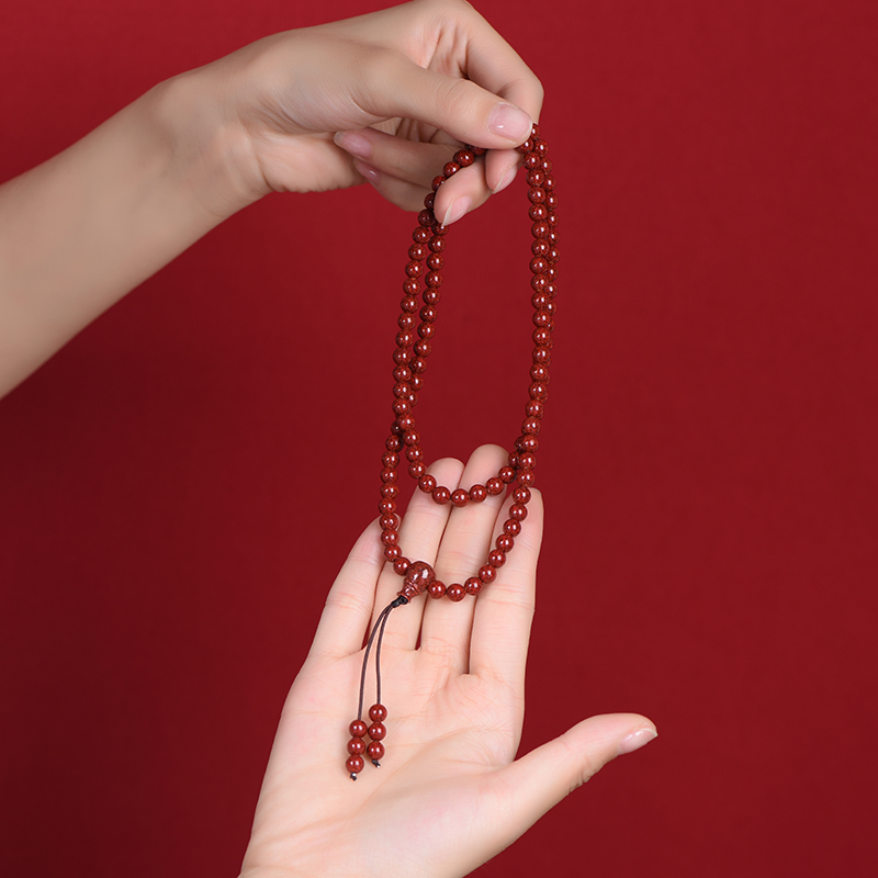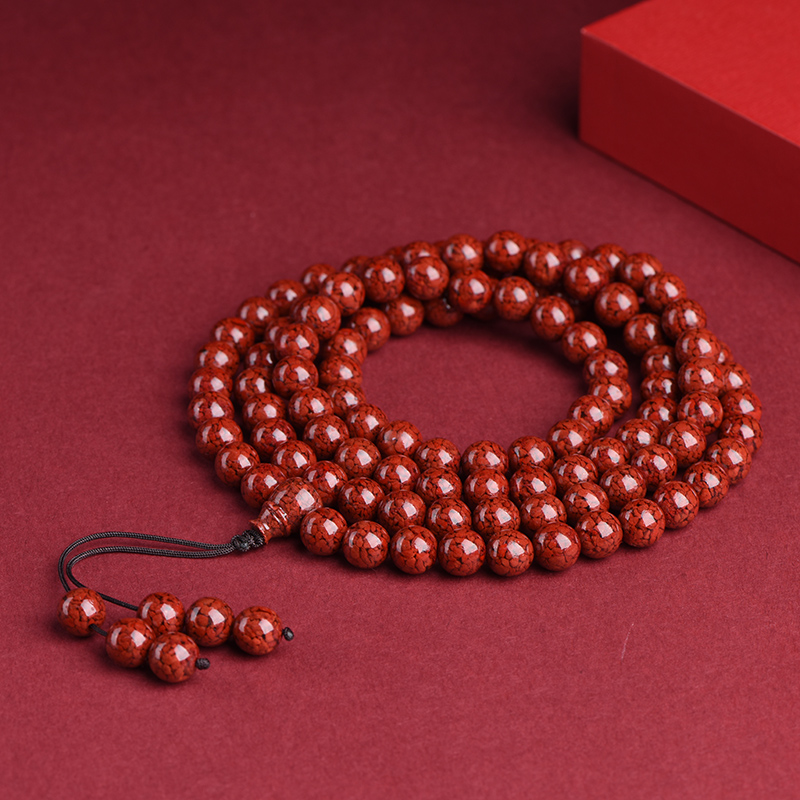 天然原矿晶体朱砂多圈手串大颗粒天然原矿晶体砂108颗佛珠手链男