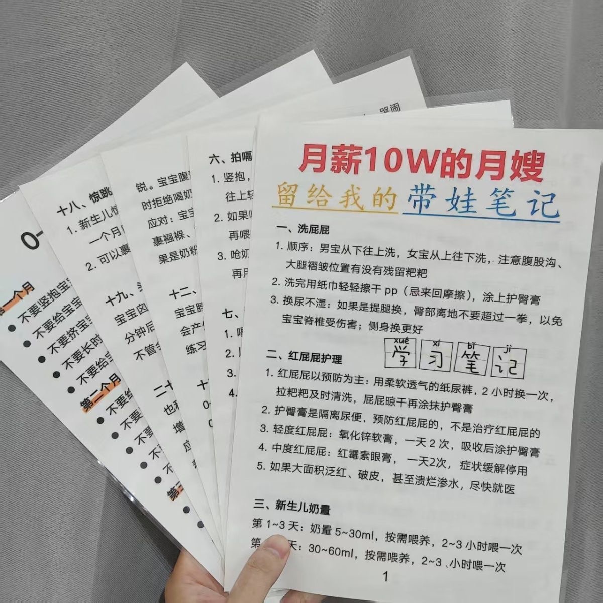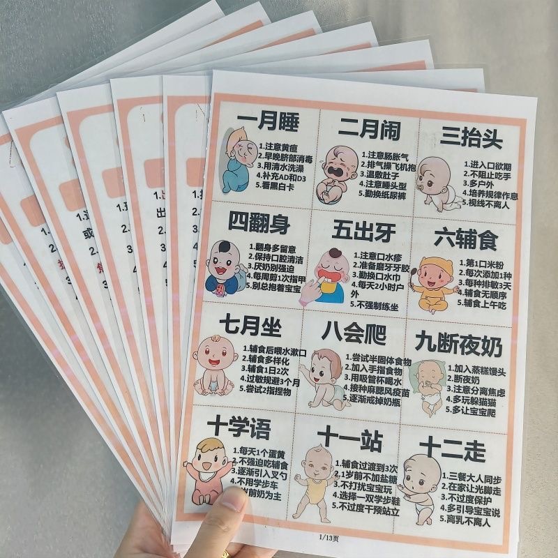 新手宝妈0-12月新生宝宝育儿指南月嫂带娃经验学习笔记挂图认知卡