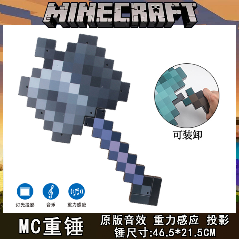 我的世界斧头重锤子钻石剑镐二合一变形武器发光儿童生日玩具男孩