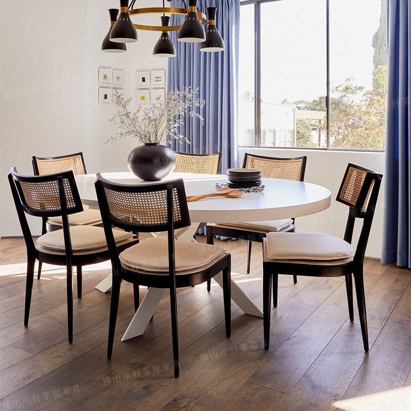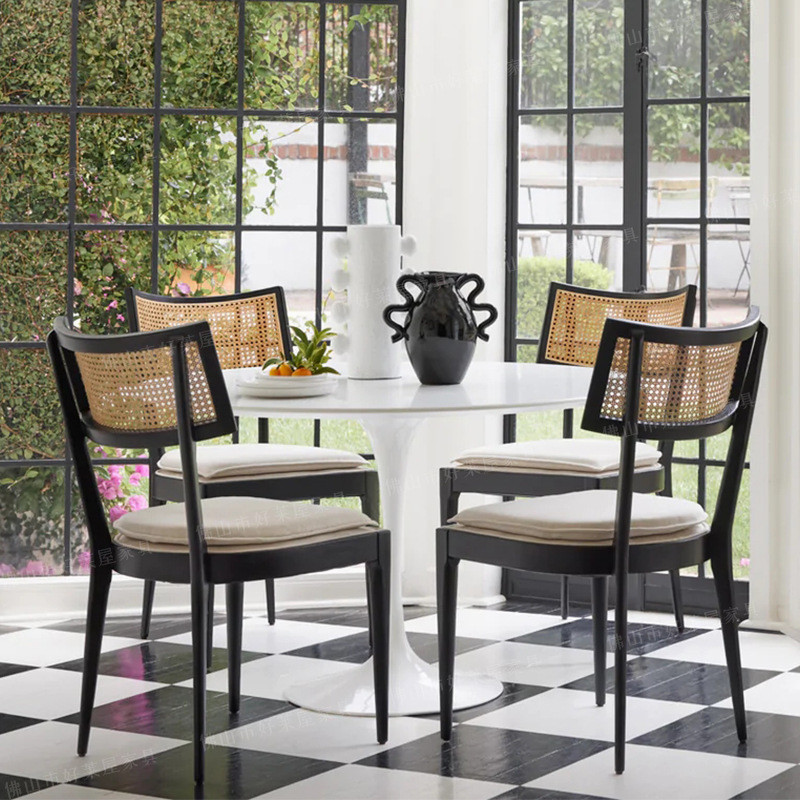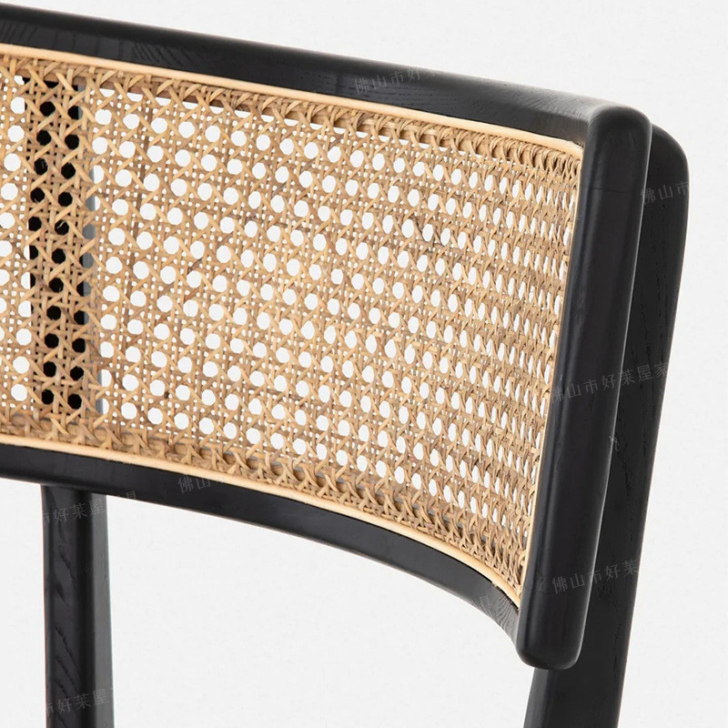 北欧实木藤编餐桌椅家用客厅复古靠背椅子休闲简约现代书桌椅藤椅