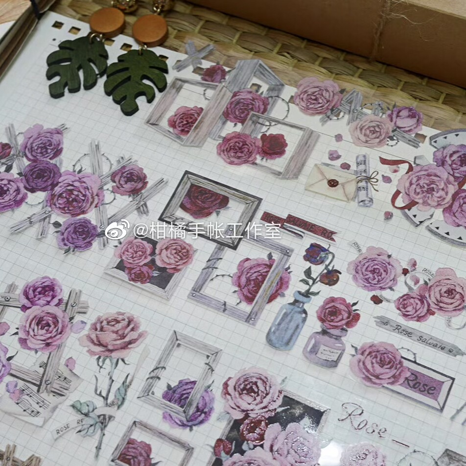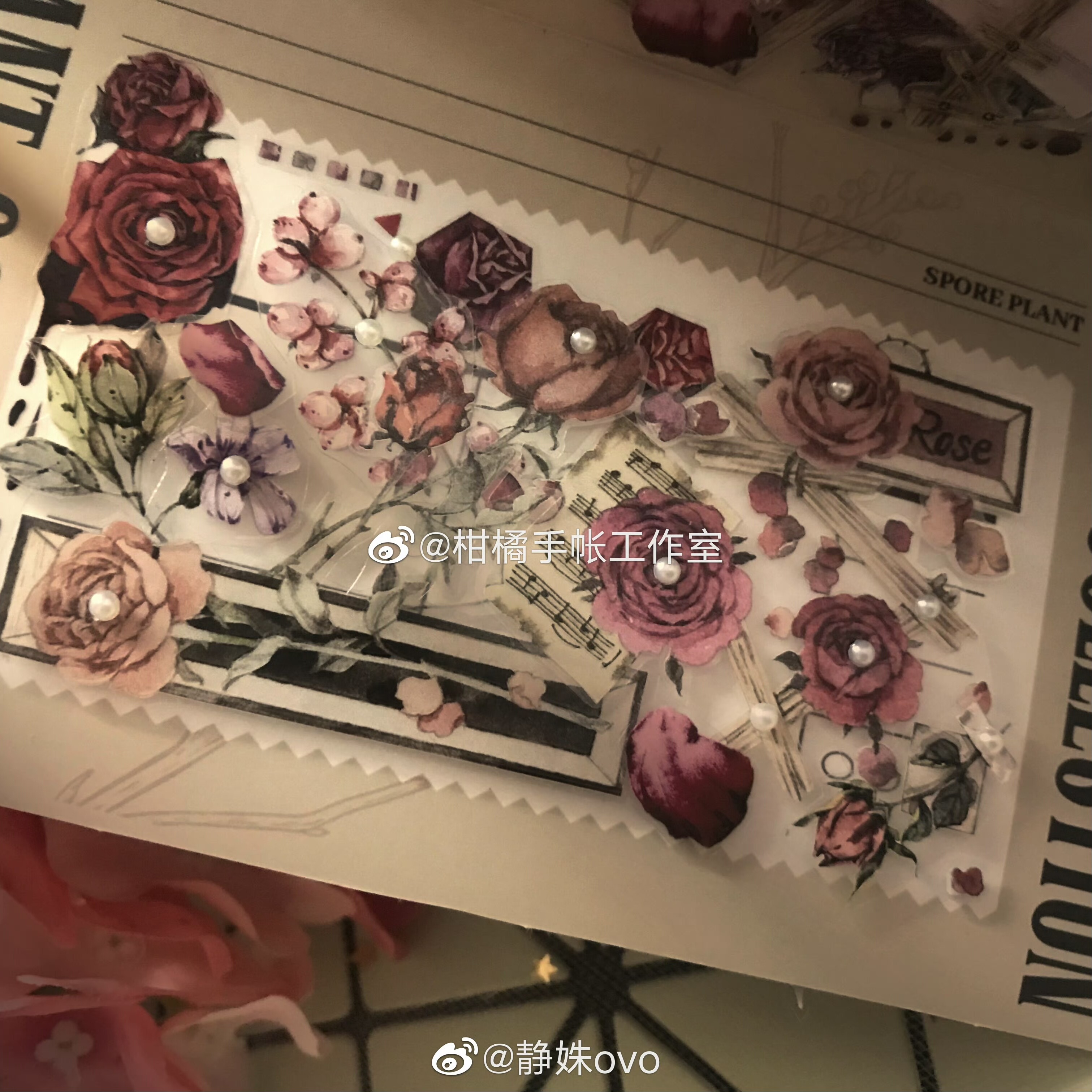 网红绝版 玫瑰时期 柑橘手帐花朵复古PET水晶台产胶带百搭打底素