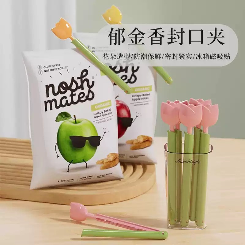 "郁金香封口夹"家用零食密封夹子磁吸套装可吸附冰箱方便小夹子