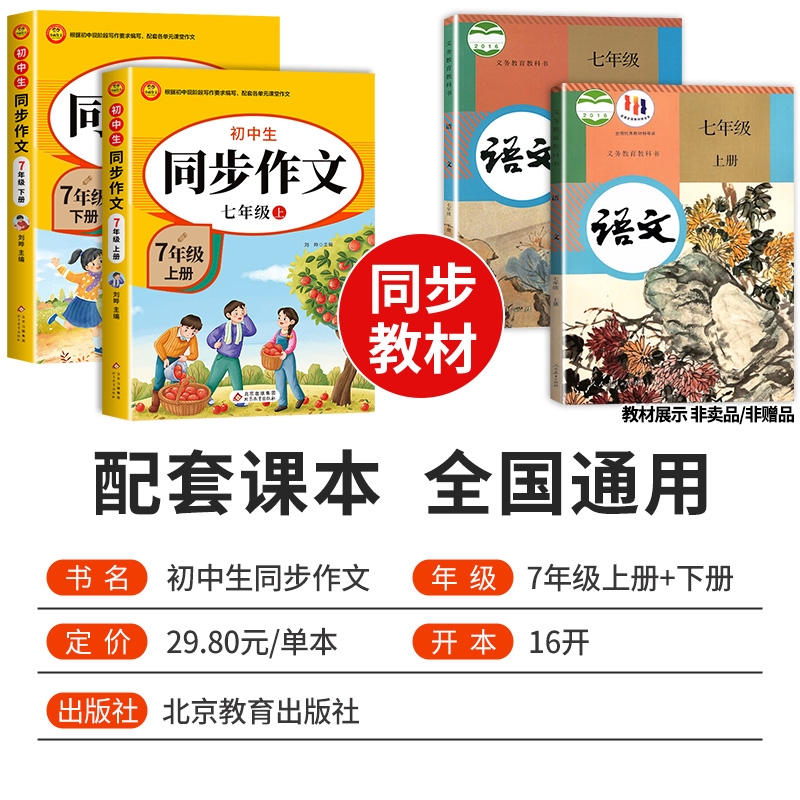 2025七年级上册语文同步作文配套人教版初一7年级同步练习册初中高分范文精选满分优秀作文书大全中学生写作技巧下册基础训练阅读