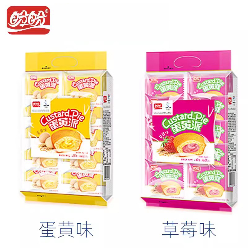 盼盼蛋黄派草莓味早餐充饥注心蛋糕面包学生宿舍休闲零食整箱批发