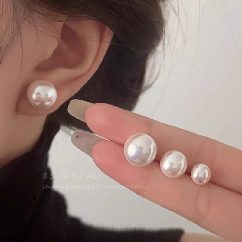 fever同款珍珠耳钉999纯银施家耳环2025新款爆款高级轻奢正圆耳饰